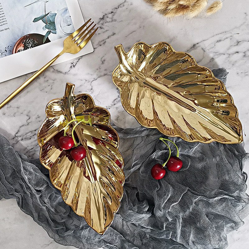 Name: Piring Saji Keramik Bentuk Daun Warna Gold/piring Saji Unik/piring Hias Cantik