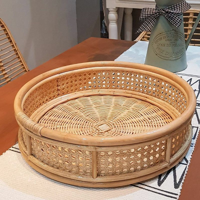 Nampan Baki Bulat Rotan Alami Aesthetic Vintage Natural diameter 38 cmtinggi 17 cmnampan rotan alami ini cocok untuk menghiasi rumah kakak. aesthetic banget Selama barang masih ada postingannya berarti stock produk tersebut r