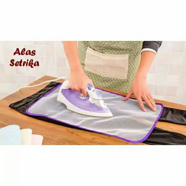 Alas strika, alas kain strika, pelindung pakaian saat strikareadywarna randomukuran 60x40cmPakaian kesayangan anda jadi gosong atau terbakar akibat suhu setrika terlalu panas ?? Atau gambar printing kartun di pakaian kesayangan anak anda jadi ngelupas atau lecet akibat disetrika dengan suhu tinggi ??Seringkali saat menyetrika pakaian tanpa sadar anda menyetrika pakaian yang bahannya lebih tipis atau yang ada printing gambar dengan suhu tinggi sehingga pakaian jadi gosong atau printing gambar di pakaian anak jadi nempel ke setrikaan. Sayang kan beli bajunya mahal- mahal.Dengan alas setrika ini anda dapat mengatasinya. Alas setrika berfungsi sebagai pelindung saat setrika pakaian sehingga suhu panas dari strika tidak langsung menyentuh pakaian. Saat anda lupa mengatur suhu setrika, pakaian anda gak bakal gosong, gambar kartun juga gak bakal ngelupas walau disetrika dengan suhu tinggi.Dengan alas setrika, hasil setrikaan jadi lebih baik dan bahan dari pakaian jadi lebih awet, tidak mudah rusak akibat sering kontak langsung dengan setrikaMaterial Kain jaring, bahan bisa dilipat dan dicuciWarna Ran
