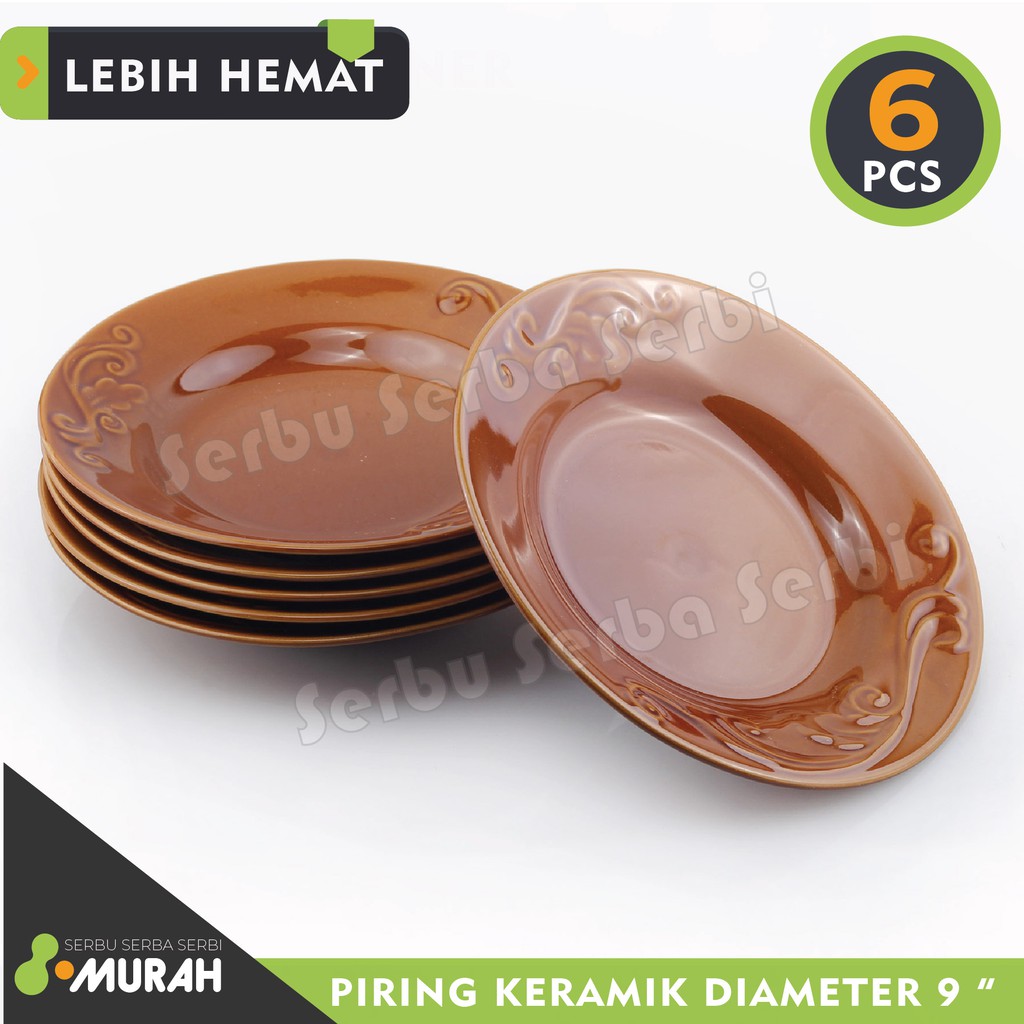 Termurah Perlengkapan di Kabupaten Buleleng Serbu Murah - Set 6 Pcs - Piring Keramik Lucky Emboss Bunga 9"- Piring Cantik - Piring Kaca dari Tidak Ada Merek Kota Bandung