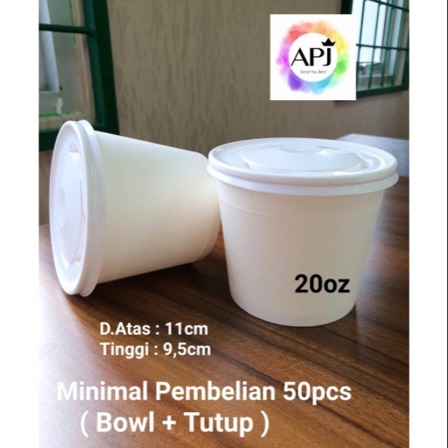 Harga tercantum termasuk 1 bowl & 1 tutupnyaPaper Bowl 20oz/600ml dengan lid tutupMINIMAL PEMBELIAN 50PCS, berlaku kelipatan 50,100,150,200 dsbg - Bahan DPE - Food Grade ( tahan panas,air & minyak )Gosend/Grab Sameday max 300pcs Di atas itu harus in