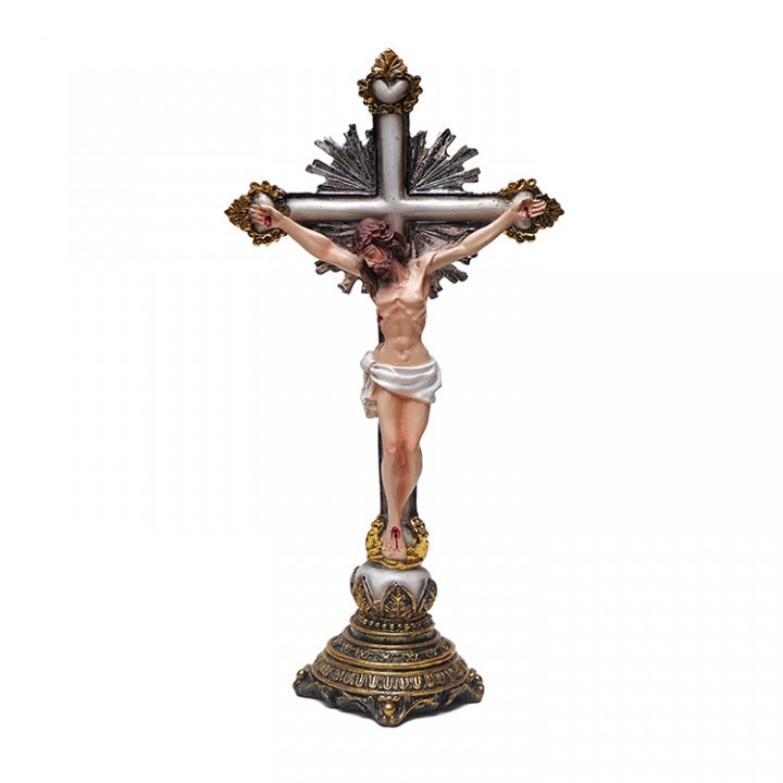 Salib duduk yang elegan ini terbuat dari bahan fiber kualitas. Sentuhan warna emas dan proses pembuatan yang rumit menjadikan salib ini unik dibanding salib lainnya. Cocok untuk di taruh di meja belajar atau sebagai pajangan.Bahan : FiberUkuran keseluruhan : 18 x 36 cmPackaging: Pla