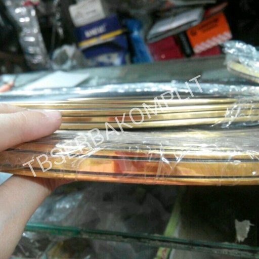 Lis Variasi 10mm biasa digunakan utk variasi pembuatanbingkai/furniture/kerajinan tangan lainnya.Tersedia ukuran 10mm, 15mm, 18mm (harga berbeda)2 Warna : Emas-Emas / Emas-Dop1 roll panjang 100yard (kurang lebih 4