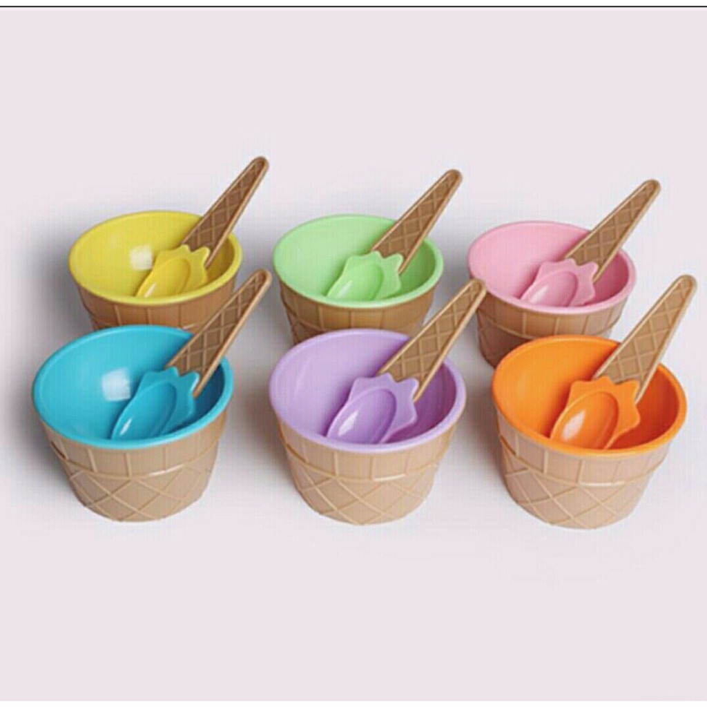 Barang Mangkok Es Krim - Mangkuk Cemilan Ice Cream Bowl Set Mangkok Sendok Plastik Cute Cone Warna Imut biasa. Kurir biasa. fasilitas penjual juga biasa. sebab gue orangnya biasa saja .